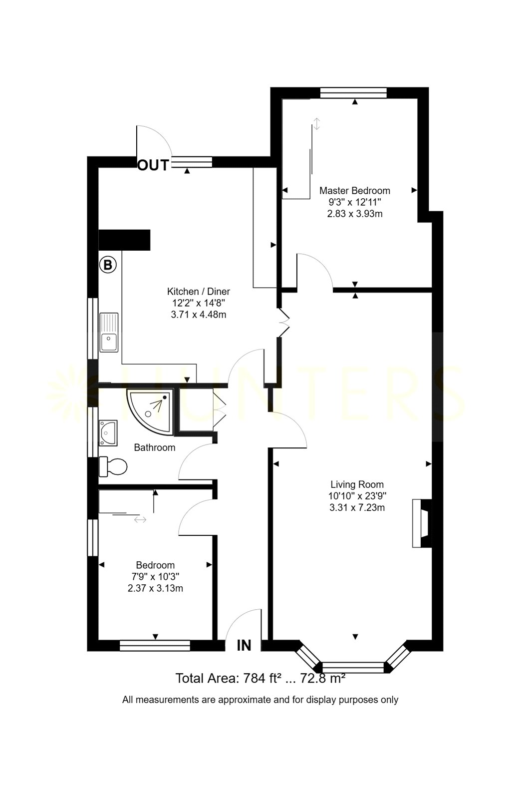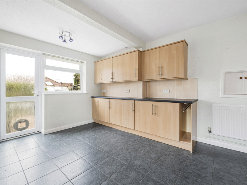 The kitchen/diner offers ample over- and under-counter storage, space for freestanding appliances, and room for a dining table. From here, you can access the rear garden.