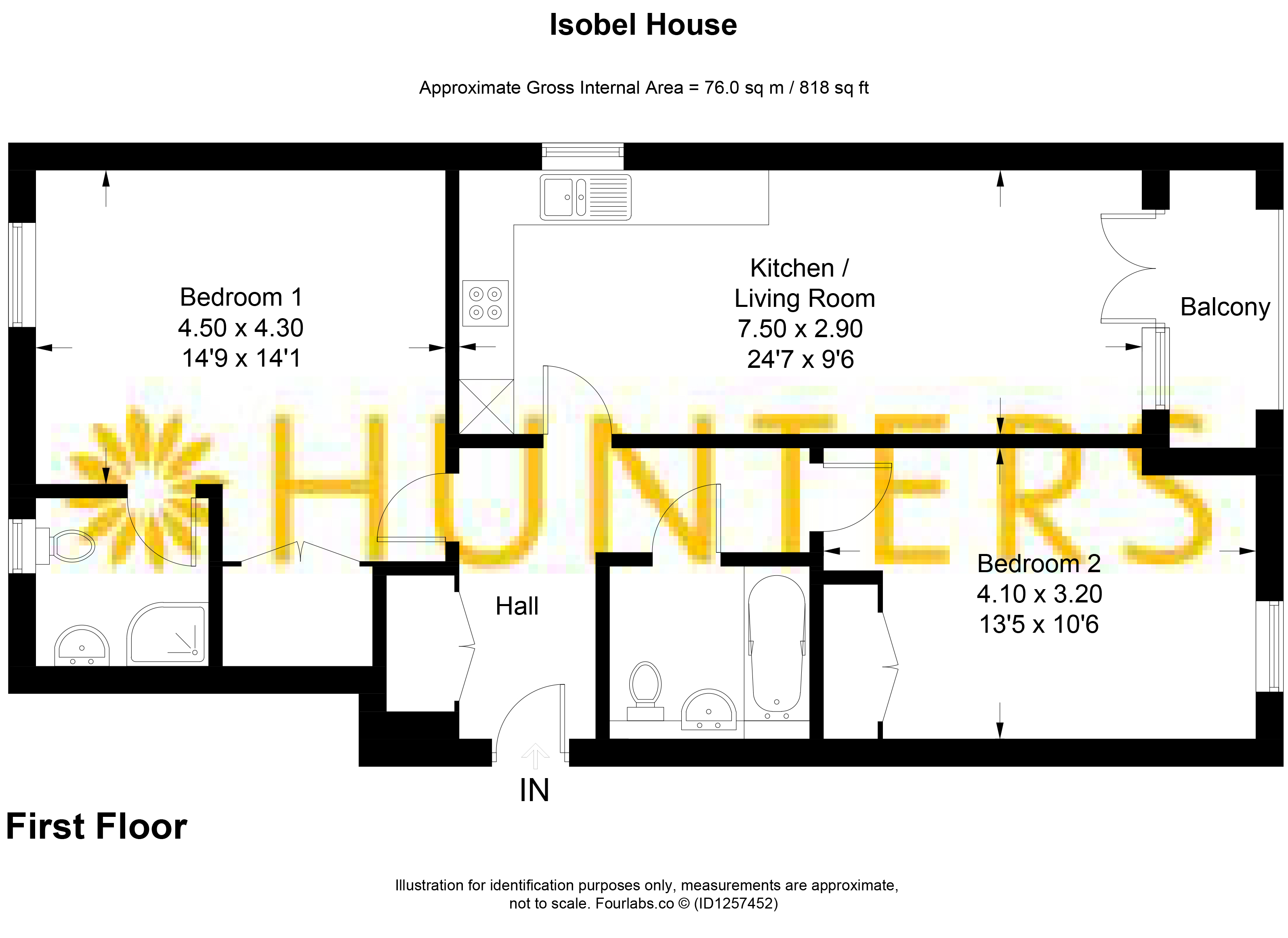 Hunters Lettings are delighted to exclusively bring to the market this superb, modern two double bedroom, two bathroom, first-floor apartment with private balcony. Offering generous living space throughout, the accommodation comprises: