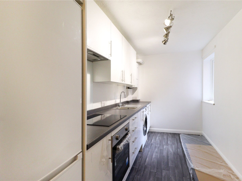 Entrance hallway with a fully fitted kitchen benefiting from ample cupboard and worktop space, integrated electric oven and hob, stainless steel sink, freestanding fridge/freezer and washing machine. The apartment offers a spacious living room with an abundance of natural light coming into the room.