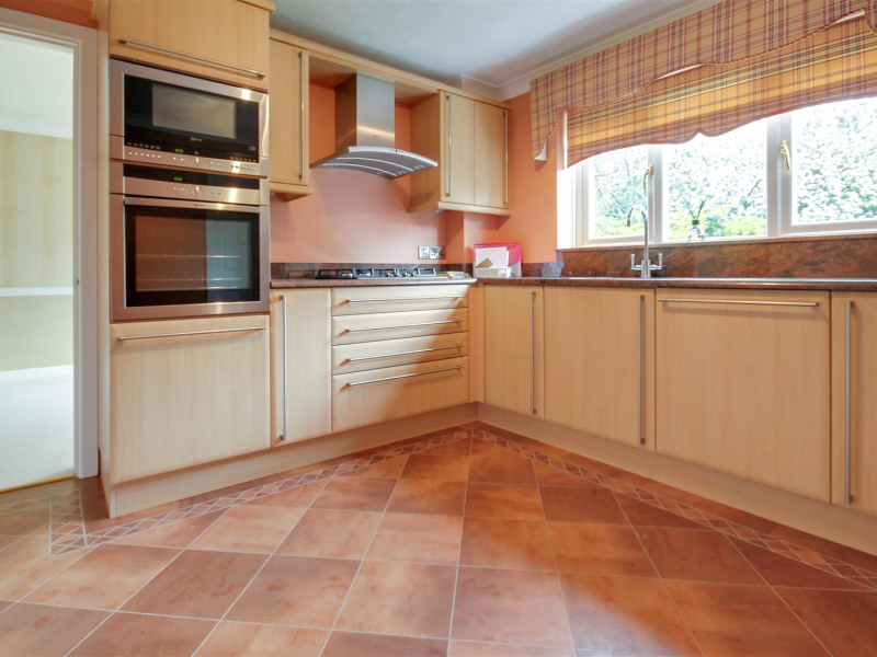 The modern fitted kitchen offers granite worktops, stainless steel gas hob, oven and integrated fridge/freezer with adjoining utility room.