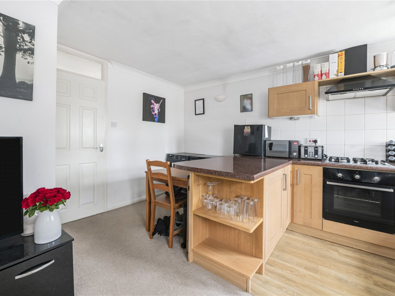 To the front of the property there is an allocated parking space, with additional on-street parking available nearby. The property benefits from a low-maintenance front garden and a useful external storage cupboard. Accessed via a private entrance door, stairs rise to the apartment.
