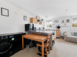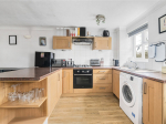 The accommodation opens into a spacious open-plan living/kitchen/dining room, offering ample space for freestanding living furniture. The modern kitchen provides a range of wall and base units with generous worktop space, and includes built-in appliances such as a fridge, oven and gas hob. There is also space for a washing machine and a breakfast bar, creating an ideal area for both everyday living and entertaining.