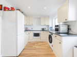 The flat is through a tidy communal entranceway, with stairs leading to the first floor. The front door leads directly into the large and spacious living dining room which has fitted electric heaters, double glazed windows to the rear, a telephone intercom system and TV points. The kitchen comprises of fitted wooden cupboards, ample worktop space, integrated electric oven and hob, and stainless steel sink with freestanding space for a washing machine and a fridge freezer.