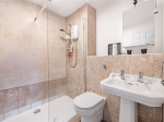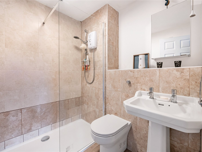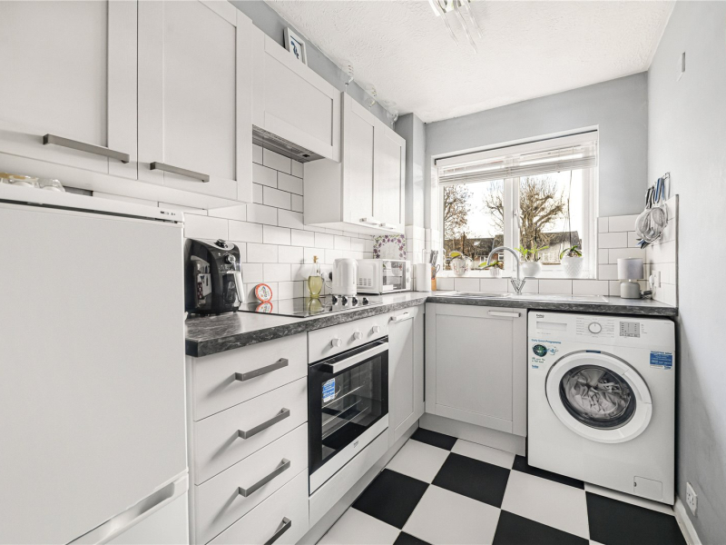 The kitchen provides ample over- and under-counter storage, with space for a washing machine and fridge/freezer. It also benefits from a built-in electric oven and hob.