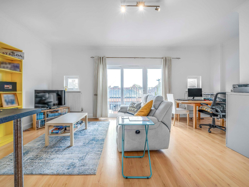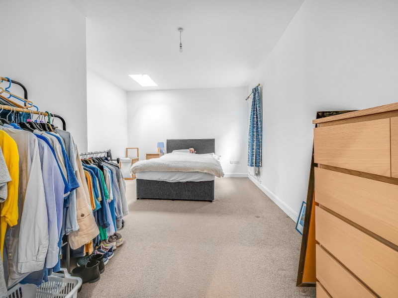 The apartment itself features a large open-plan kitchen, diner and sitting room to the front of the block, benefitting from a Juliet Balcony and Velux Windows, providing an abundance of natural light all year round. The kitchen has been fitted with ample worktop space, a breakfast bar, integrated fridge freezer, washing machine, gas hob, oven and extractor fan, plus a 1.5 stainless steel sink and drainer, with undercounter space for a dishwasher or second appliance.