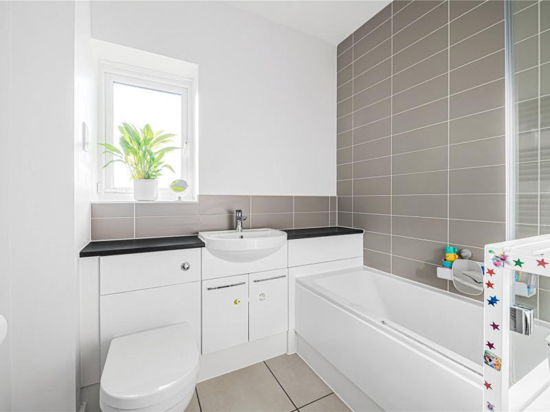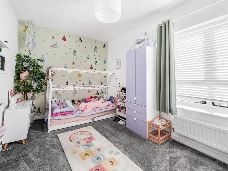 The master bedroom benefits from built-in wardrobes and a modern en-suite shower room fitted with a walk-in shower, WC and wash basin. The second bedroom is another spacious double, providing ample space for freestanding furniture. The family bathroom comprises a bath with overhead shower, WC and wash basin.