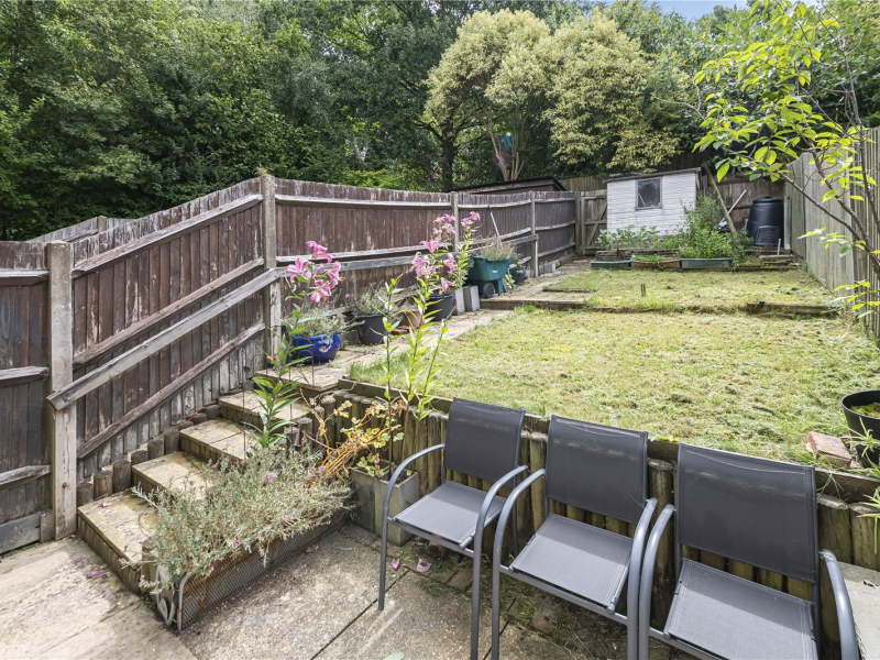 To the rear of the home, a generously proportioned living and dining room offers a great space for relaxing or entertaining, with double French doors opening directly onto the garden. There’s also a large understairs storage cupboard.
