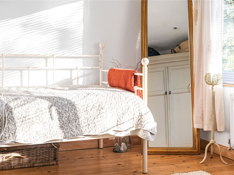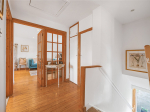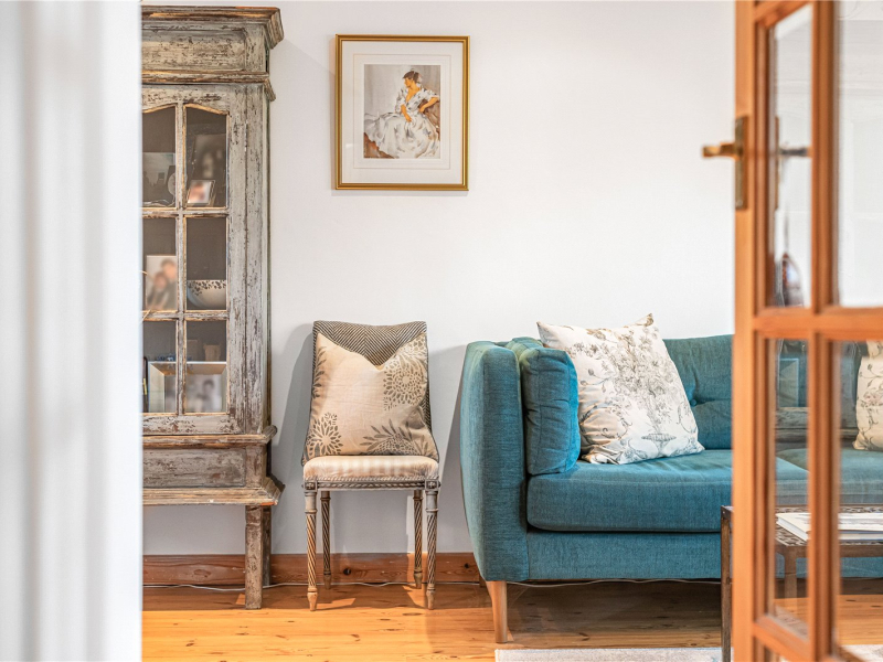 Moving upstairs, the first-floor landing offers a generous space finished with attractive exposed wooden flooring. This level includes two sizable storage cupboards, one housing the boiler, as well as an additional third cupboard.