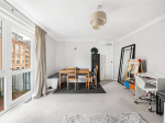 Upon entering, the property offers two large storage cupboards in the hallway. The spacious living/dining room provides ample space for freestanding furniture and gives access to a private balcony, perfect for enjoying the warmer months.