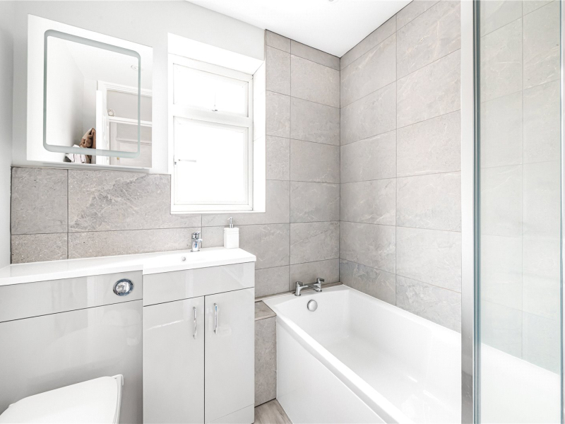 The bathroom has also been newly fitted in July 2025, finished to a modern standard with a bath and overhead shower, wash basin, and WC.