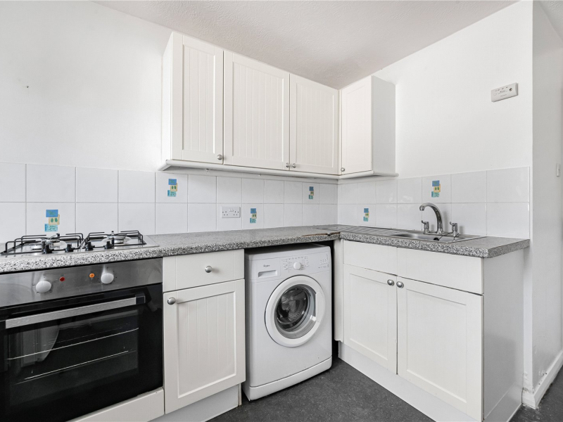 There are two well-proportioned bedrooms, both benefiting from built-in wardrobes and space for further bedroom furniture. The kitchen offers ample wall and base units, space for a tall-standing fridge/freezer and washing machine, as well as a built-in oven and gas hob. The bright and spacious living/dining room features dual-aspect windows, allowing plenty of natural light and offering ample space for freestanding furniture.