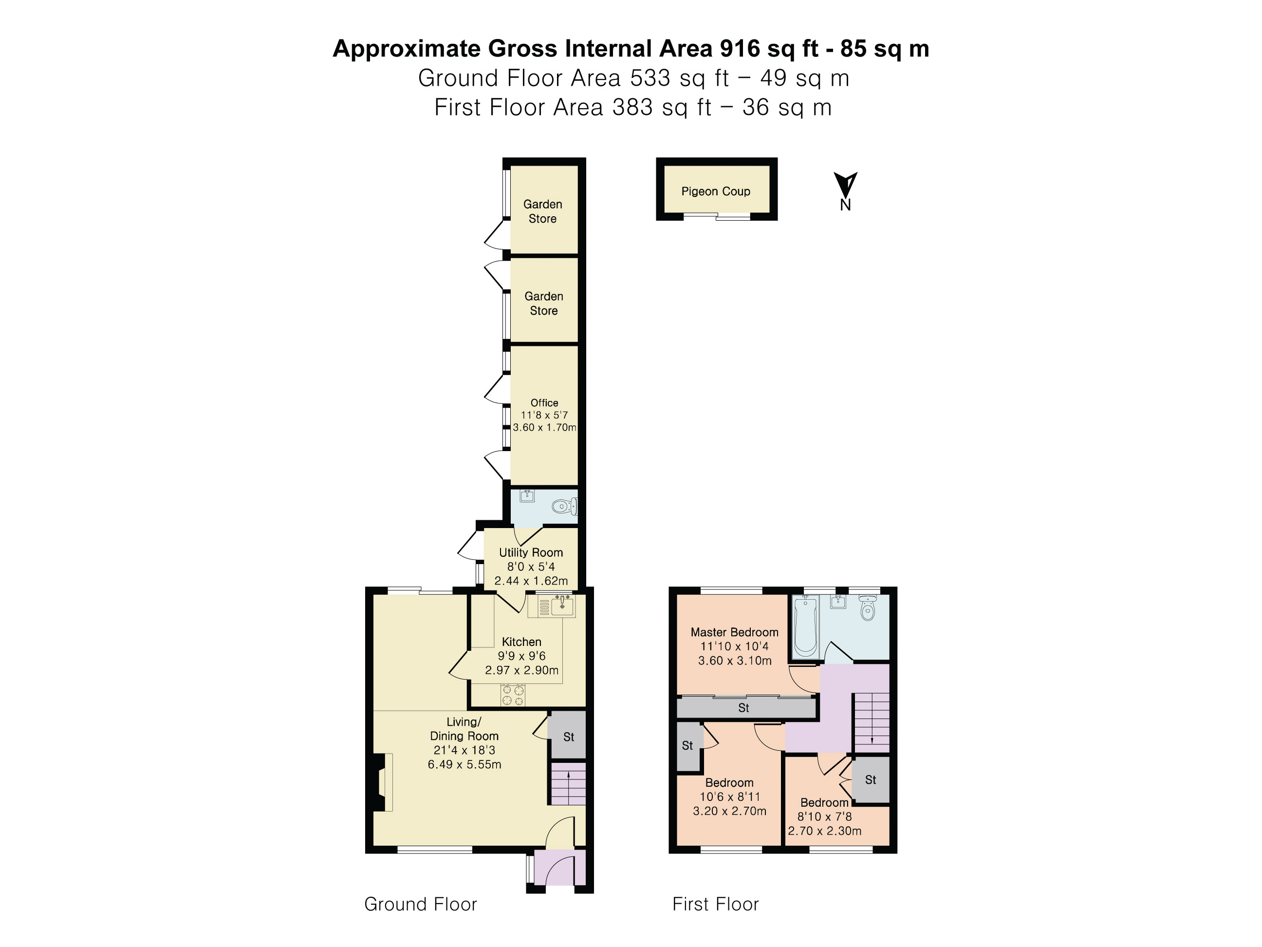 To the rear, the garden is fully landscaped and benefits from garden storage and a 55 sqft outside office.