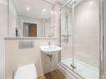 Upstairs, the property boasts three well-proportioned double bedrooms. The main bedroom overlooks the rear garden and features a stylish en-suite with a walk-in shower, WC, and basin. The remaining two bedrooms are also generous doubles, ideal for children, guests, or a home office. A modern family bathroom with a bath and overhead shower serves these rooms, and a large airing/storage cupboard is located on the landing.