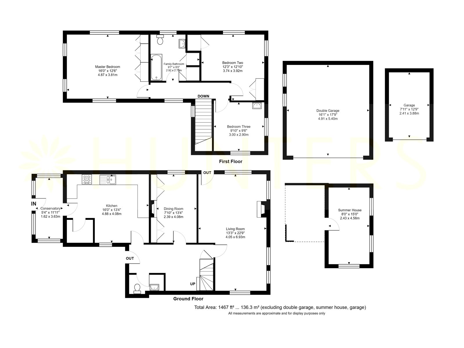 • Two driveways, single and double garage