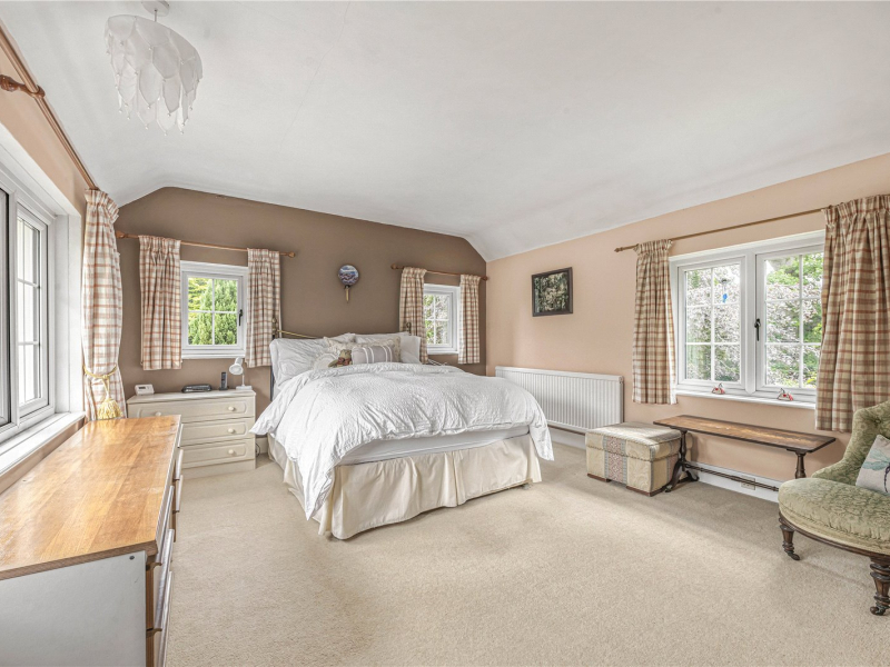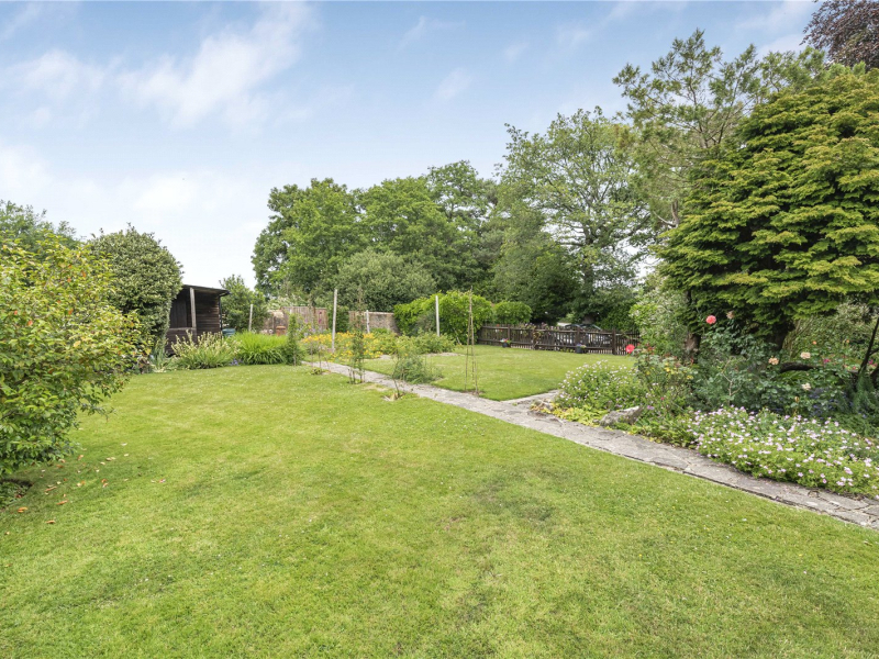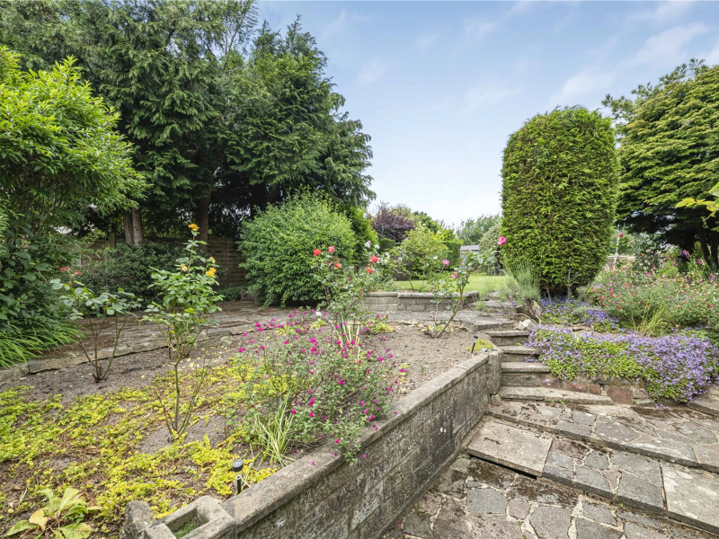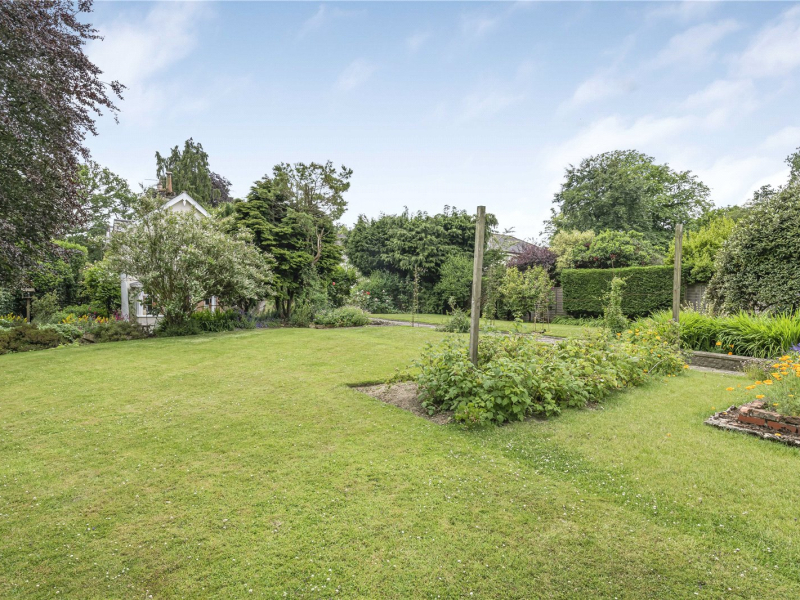 One of the key highlights of this property is its spectacular wrap-around garden, arranged mainly to the west and north. Thoughtfully landscaped, it features expansive lawns, a open porch, established borders, fruit and vegetable plots, and mature planting including wisterias, an oak tree, and a beech tree. A full-length path leads to a summer house with a south-facing veranda, offering an idyllic retreat.