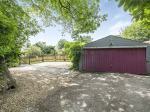 Approached via two separate driveways, the property provides excellent parking options, with one driveway leading to a single garage, and the second to a double garage, additional hardstanding, and a useful block-built outbuilding.