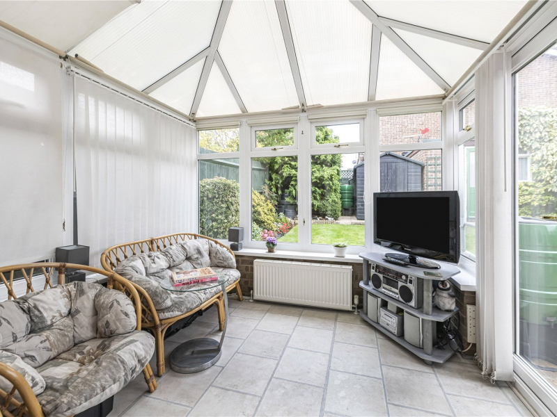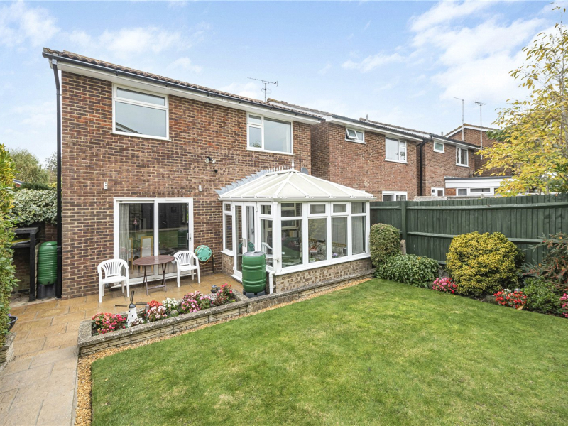 You’re welcomed into an inner hallway with access to a useful larger than average downstairs cloakroom/WC. At the front of the house is a bay-fronted living room, filled with natural light, an ideal spot for relaxing or entertaining and will easily accommodate a 3-piece suite/large sofa suite. To the rear, the generously sized dining room connects directly to the garden, kitchen, and conservatory, creating a natural flow throughout the ground floor. The patio doors open onto the garden and a large patio area which is south facing and a real sun trap. The conservatory enjoys views across the garden and serves well as an additional sitting area, playroom, garden room or alternative dining area. The kitchen is well laid out with hob and oven, space for a fridge/freezer, the washing machine, and dishwasher are also included—offering a functional and practical workspace.