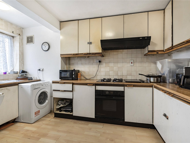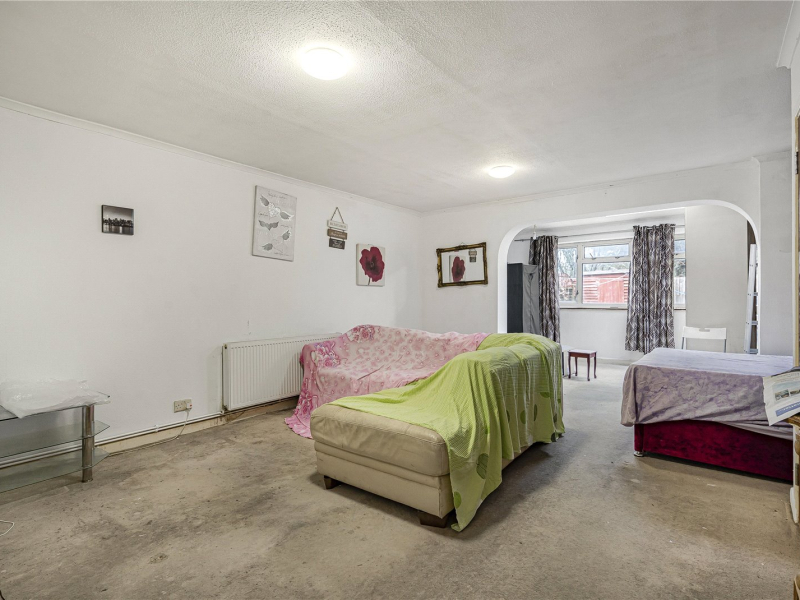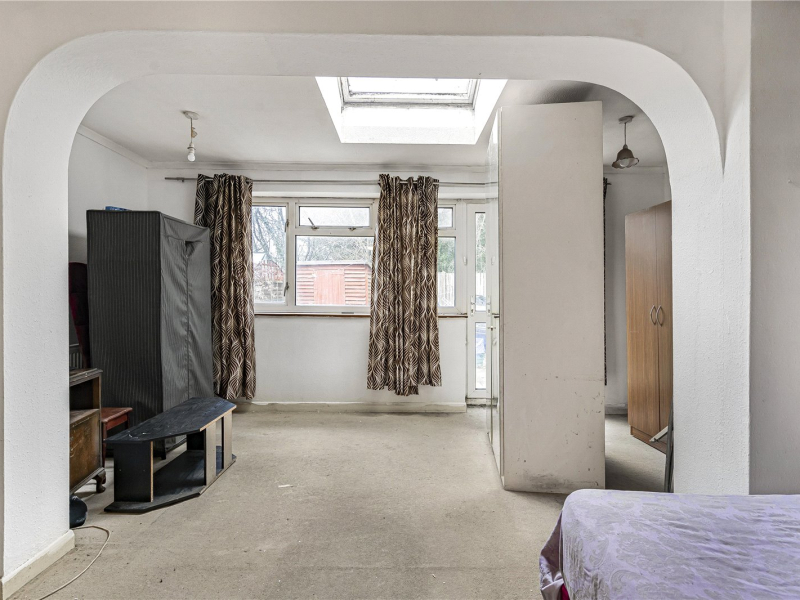 To the rear of the property is an extended living and dining room, offering generous space for freestanding furniture and ideal for entertaining. A door provides direct access to the garden.