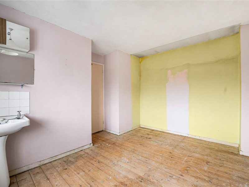 Upstairs, there are two spacious double bedrooms and a smaller single room. The third bedroom also includes built-in storage. The bathroom features a bath and basin, with a separate WC for convenience.