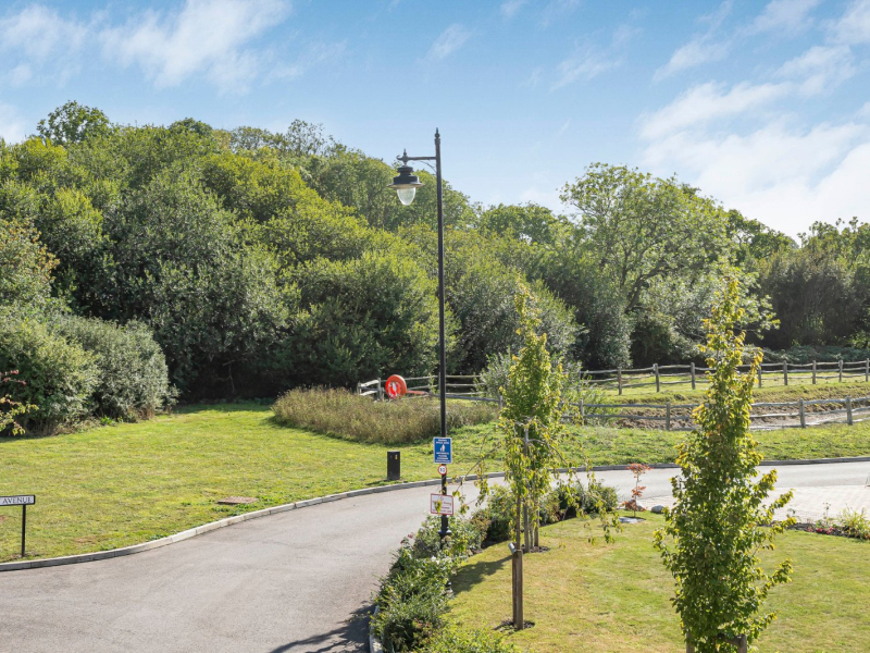 Outside, the property continues to delight. To the front, the wide lawn is bordered with attractive planting and looks directly across the green, giving the house a wonderful sense of openness and privacy. A side gate leads through to the rear garden, which faces north-east and measures approximately 27 feet by 20 feet. This private space is mainly laid to lawn, with raised sleeper beds providing a splash of colour and seasonal interest, and an outside tap adds convenience. To the side, a double-length carport provides secure and sheltered parking for two vehicles, a real advantage within this popular development.