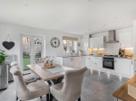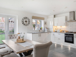 Inside, the property is beautifully presented and thoughtfully laid out to create a home that is both practical and welcoming. The entrance hall offers an immediate sense of space, with a useful built-in cupboard for storage and a cloakroom, while a staircase rises to the first floor. To the rear of the property, the kitchen and dining room enjoy a double aspect and are fitted with a smart range of modern grey units, complemented by a full suite of integrated appliances. French doors open directly onto the garden, seamlessly connecting indoor and outdoor living spaces and making this an ideal setting for entertaining. The living room also benefits from a dual aspect, ensuring it is light and airy throughout the day, and offers generous proportions that provide plenty of room for both relaxation and family gatherings.