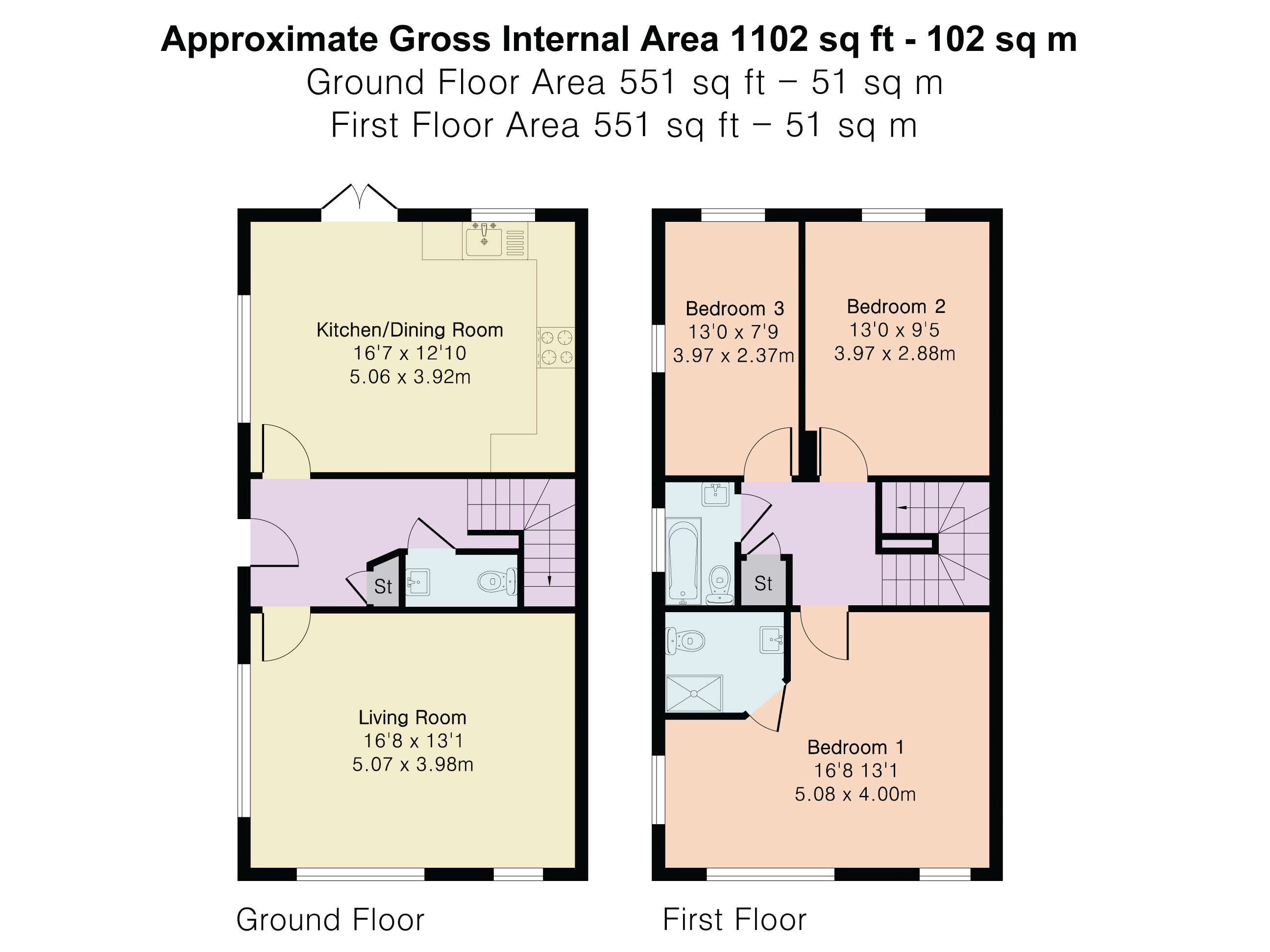 Upstairs, the sense of space continues with a bright landing that incorporates a shelved cupboard. The master bedroom is particularly impressive, enjoying a dual aspect with views over the green, as well as a stylish en-suite shower room. Two further bedrooms provide versatile accommodation, equally suited to children, guests, or working from home, while the family bathroom is finished to a high standard with a modern suite including both a bath and a separate overhead shower.