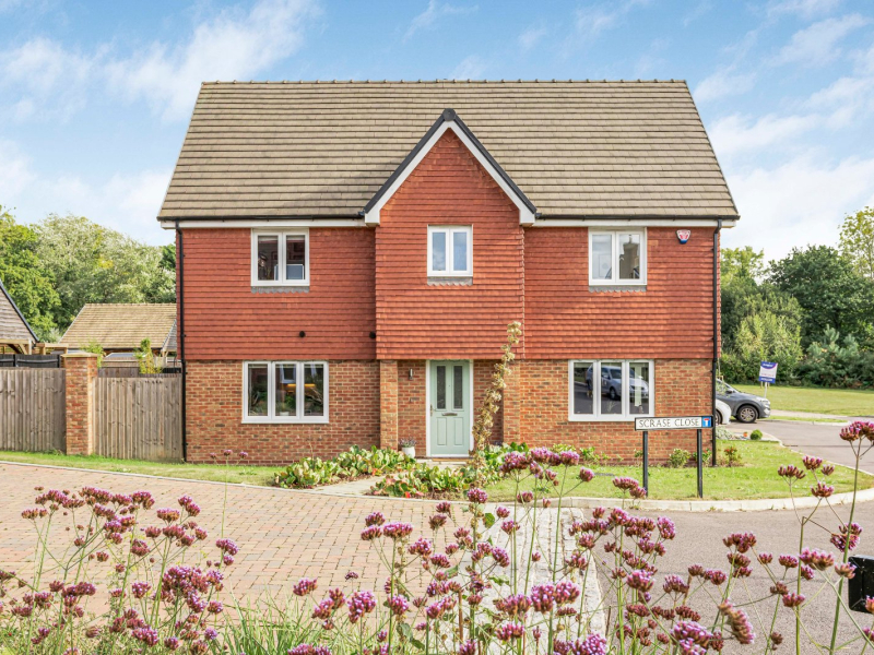 Hunters are pleased to bring to market this stylish three-bedroom double-fronted home, built in 2020 by Jones Homes and positioned on a prominent corner plot within the prestigious Folders Grove development. Overlooking a tranquil tree-lined green, the property is ideally located on the sought-after eastern side of Burgess Hill, within easy reach of Ditchling Common, Ridgeview Wine Estate, and just 1.3 miles from the town centre and mainline station. The house is beautifully appointed with a modern kitchen/dining room opening onto the garden, a bright dual-aspect living room, three generous bedrooms including a master suite with en-suite, and the added benefit of a private rear garden and double carport.