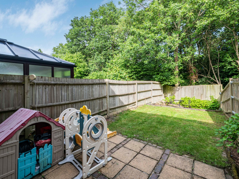 To the rear of the property, the private garden is mainly laid to lawn, with a patio area at the front and additional seating space at the rear, offering a great space for outdoor relaxation.