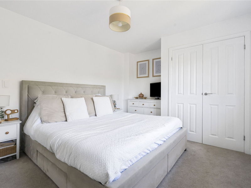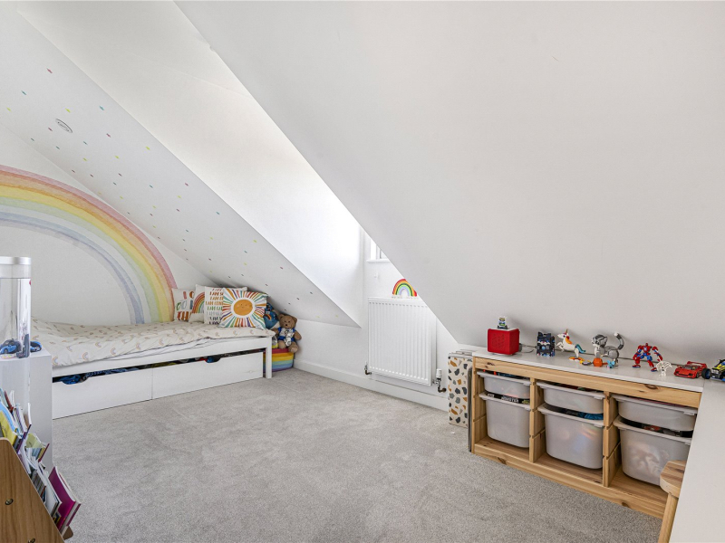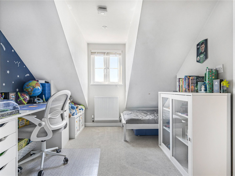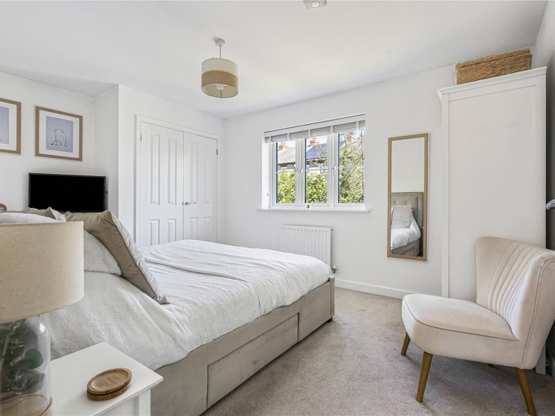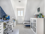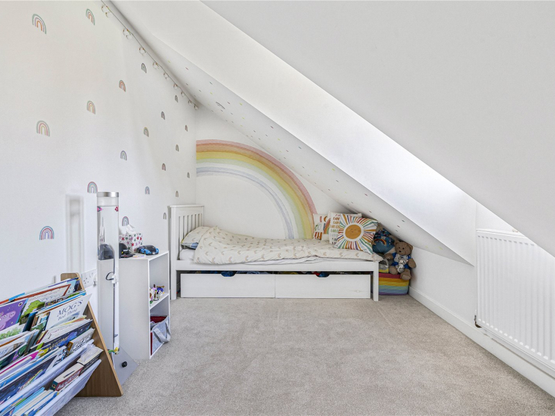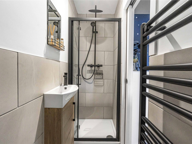 The second floor offers two further bedrooms, both providing space for freestanding furniture. One of the bedrooms benefits from an en-suite shower room, comprising a walk-in shower, WC, and wash basin.