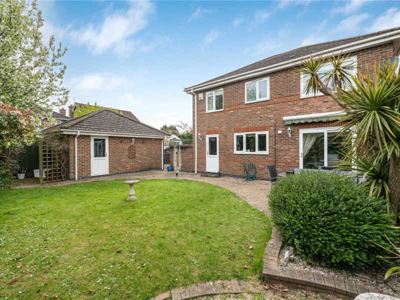 Externally, the rear garden offers side access and a patio area leading onto a level lawn. There is also direct access to the garage, which is equipped with electricity.