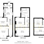 The first floor comprises two excellent double bedrooms, including a particularly spacious principal bedroom measuring over 15’ in length, with ample room for wardrobes and furniture. The second bedroom is also a good-sized double, positioned at the rear of the property. A family bathroom serves this floor, complete with bathtub, WC and basin – ideal for daily routines.