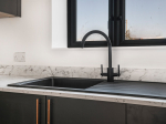 acclaimed Rever Kitchens in charcoal grey with stunning brushed copper handles. No expense