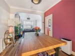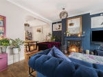 Upon entering, a welcoming porch offers practical space for coats and shoes before leading into the spacious living room. This bright and airy room features a large front bay window and a charming coal-burning fireplace, creating a cosy focal point during the colder months. The living room flows through to the dining room, which in turn provides access to the hallway and kitchen.