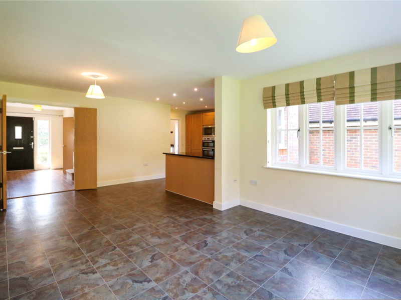 Upstairs, the principal bedroom enjoys a Juliette balcony to the front with views across woodland and open countryside, along with a walk-in dressing room and en-suite shower room. The first floor also features a modern family bathroom and three further double bedrooms, with the second bedroom benefiting from its own en-suite shower room.