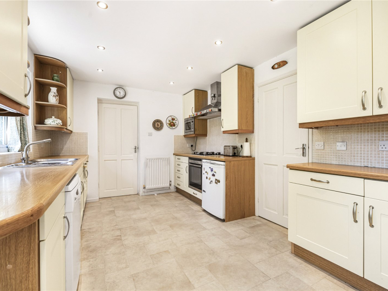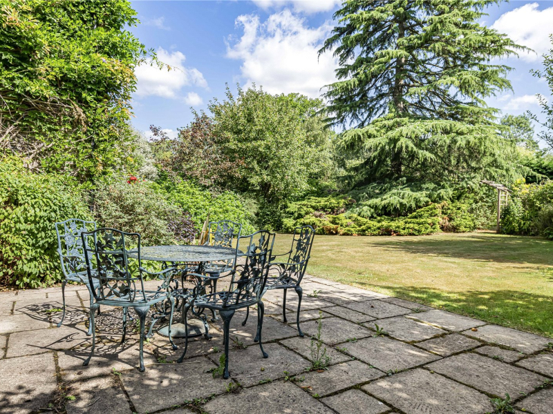 The east-facing rear garden is ideal for families and entertaining, with a patio area, a flat lawn, and plenty of mature shrubs and bushes, as well as a pine tree and apple trees. There’s also a greenhouse and a storage shed. Behind a mature hedge is a further garden area—perfect for those who enjoy gardening, or as extra space for kids to play or enjoy sports in the summer.