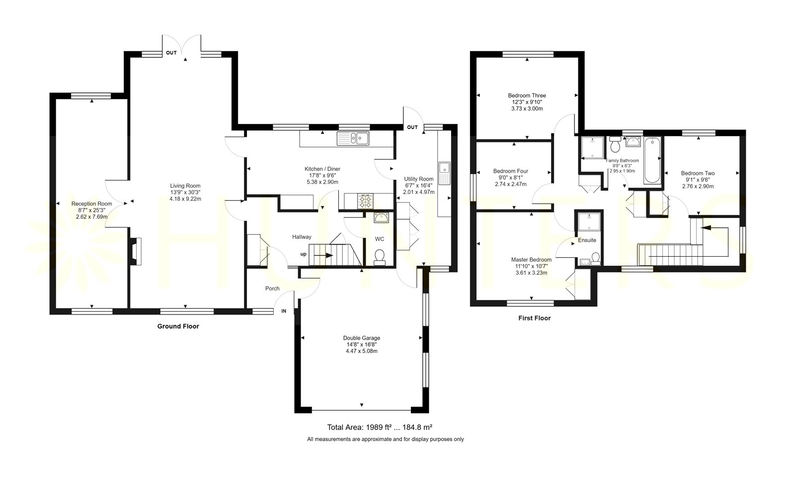 Upstairs, the spacious landing, which has ample room for a home office workspace, leads to four double bedrooms. The master bedroom has its own en-suite, complete with a walk-in shower, toilet, and sink, along with a built-in wardrobe. The main family bathroom has a bath, walk-in shower, toilet, and sink.