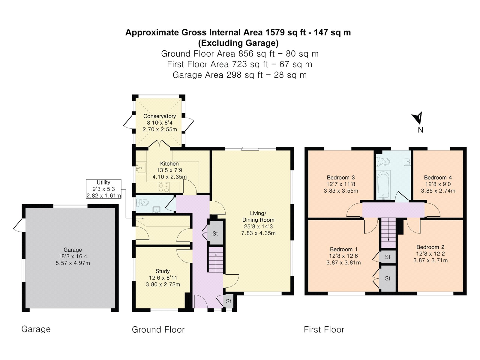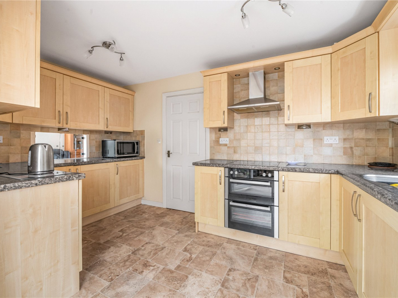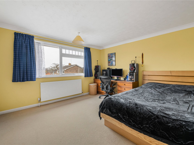 To the first floor, there are four spacious bedrooms, offering flexible accommodation. The family bathroom is fitted with a P-shaped bath with shower over, WC, wash basin, and additional built-in storage.