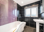 The first floor comprises three spacious double bedrooms, with the master benefiting from a newly renovated en-suite featuring a walk-in shower, toilet, sink, and built-in wardrobes. The second and third bedrooms can accommodate free-standing furniture, with the third bedroom offering eaves storage. A fourth spacious single bedroom is also available. The family bathroom is fitted with a bath, toilet, and sink.