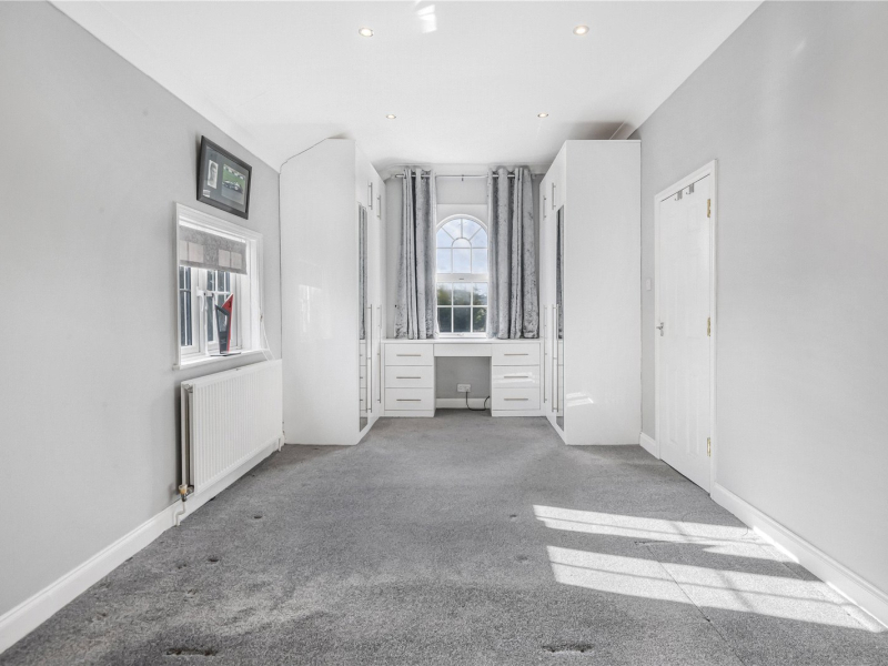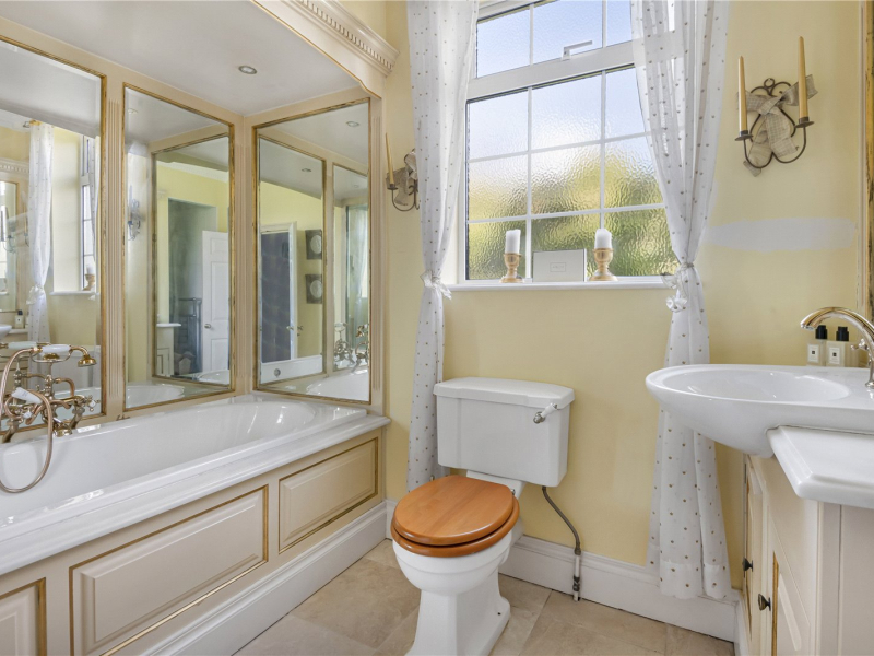 Upstairs, you’ll find four large double bedrooms. The master bedroom and a second bedroom (currently used as a dressing room) share a large south-facing balcony with stunning views over the garden. The first floor also includes a luxurious Clive Christian-designed bathroom, a modern shower room, and a further family bathroom with a bath and walk-in shower.