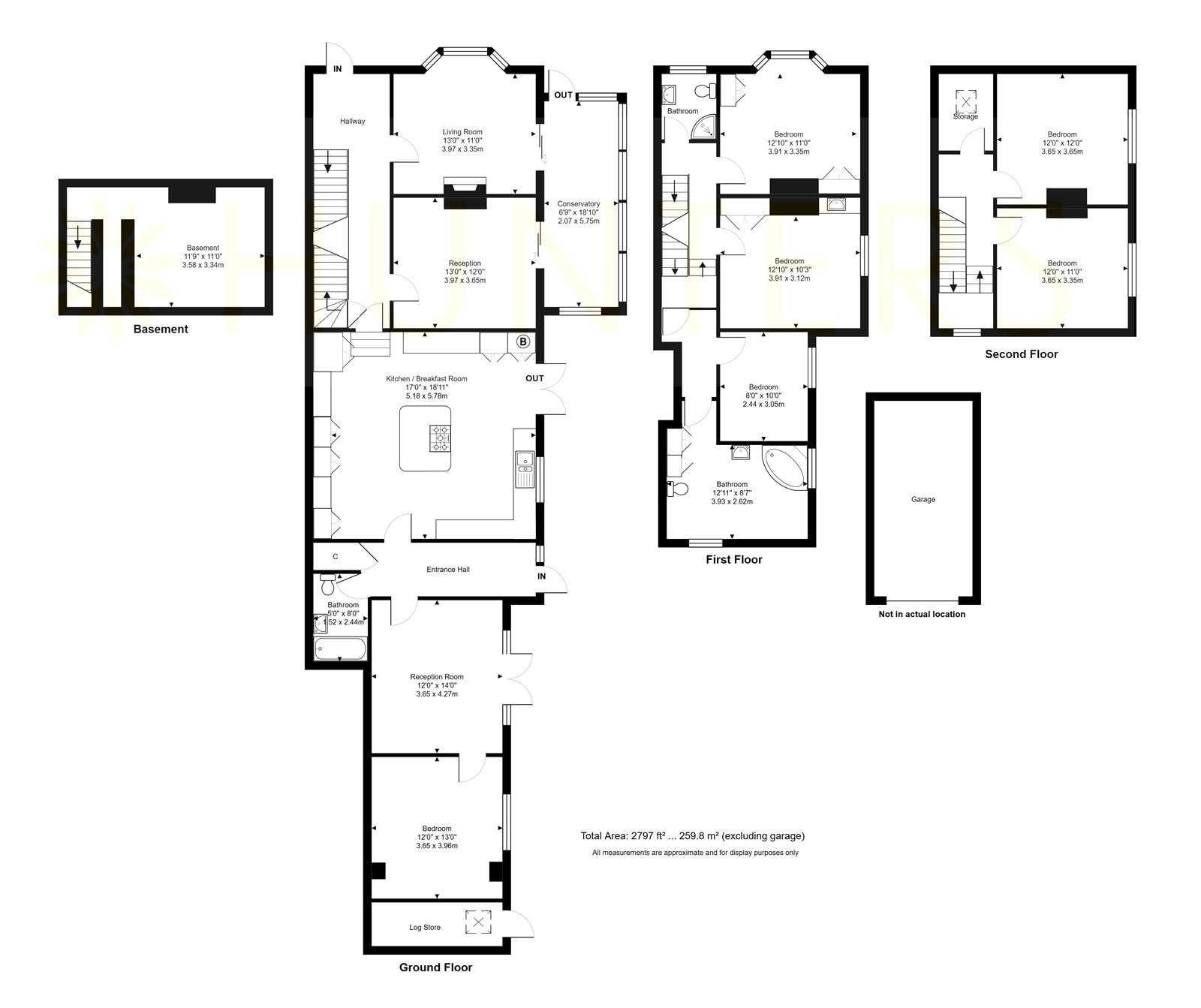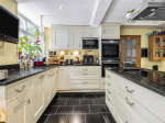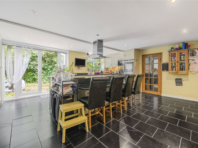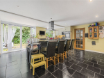 Internally, the home begins with a generous entrance hall offering ample space for coats, shoes and day-to-day essentials. To the left is the principal living room, which features an open fire place and classic period detailing. A second reception room further along the hallway makes an ideal formal dining room. Both rooms lead through to a bright conservatory, providing access to the garden. Under the stairs, a basement offers handy storage or potential as a wine cellar. The spacious kitchen/dining room is the heart of the home, fitted with a range of units and integrated appliances including a double oven, electric hob, dishwasher and large wine cooler. There is space for an American-style fridge/freezer, tall freezer, washing machine and tumble dryer. French doors open directly onto the garden, creating a seamless flow between indoors and out.
