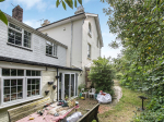 To the front of the home is a private driveway which splits into two, providing off-road parking for several vehicles and access to a single garage. The substantial front garden is the main outdoor space and offers a beautiful, enclosed setting for outdoor entertaining, with various seating areas, established trees and mature planting. The garden also features fruit trees, including two apple trees, a fig tree and a pear tree.