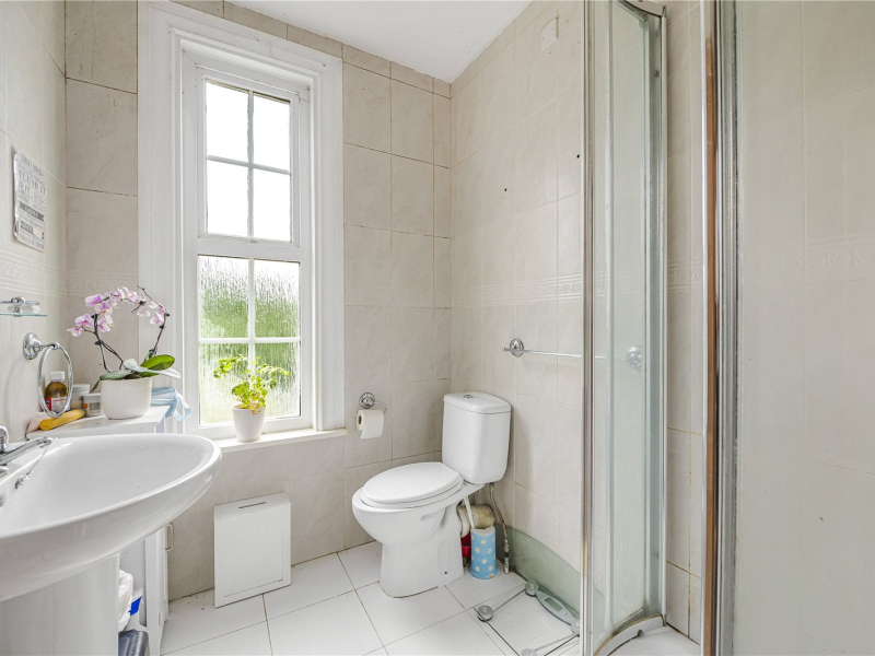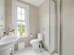 Upstairs on the first floor are three good-sized double bedrooms. The largest benefits from a bay window overlooking the front garden and built-in wardrobes. The second double also includes storage and a wash basin, while the third comfortably fits standard bedroom furniture. Two bathrooms serve this floor, one with a bath, WC, basin and plumbing for a freestanding shower, and the other with a walk-in shower, WC and basin. Additional storage cupboards are also located off the landing.